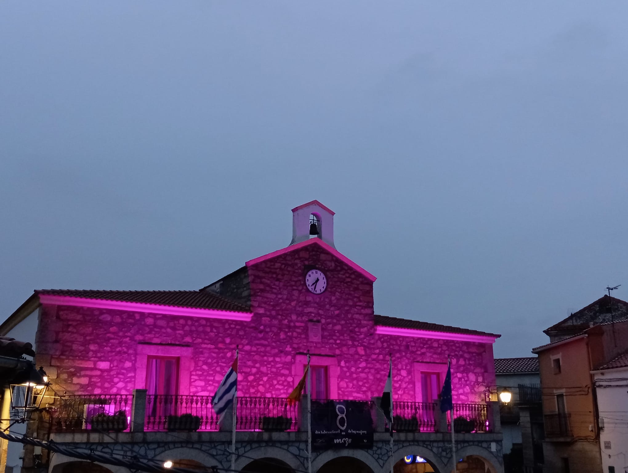 El Ayuntamiento de Plasenzuela se ilumina de morado por primera vez en la historia con motivo del Día Internacional de la Mujer