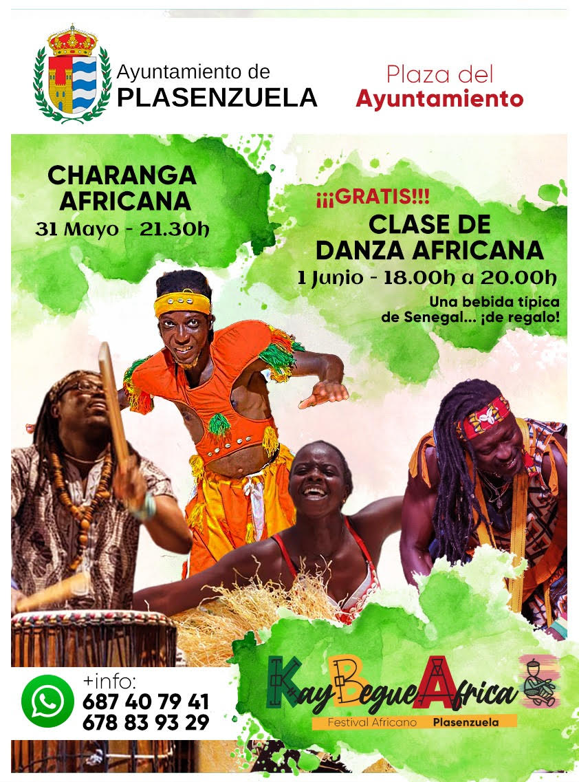 El festival empieza el viernes a las 17:00H donde estaremos recibiendo a los asistentes en un entorno privilegiado en plena naturaleza, en el Albergue de La Jarilla ubicado cerca de la ermita de Plasenzuela, donde se desarrolla gran parte del festival ya que será allí donde se cocina y se ofrece la comida típica de Senegal y se descansa por la noche tras las múltiples sesiones de danza y percusión realizadas a lo largo del día. Sobre las 21:30H, ya después de cenar, nos acercamos al pueblo para seguir a la charanga que organiza el Ayuntamiento de Plasenzuela pero en esta ocasión con sonido africano y al ritmo de la percusión y la danza senegalesa para recorrer el pueblo e inaugurar el festival.